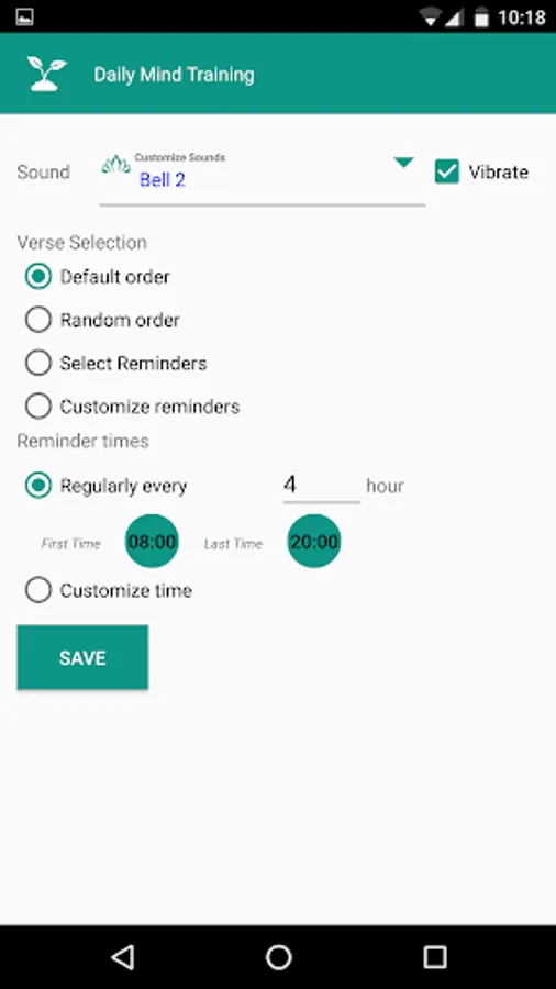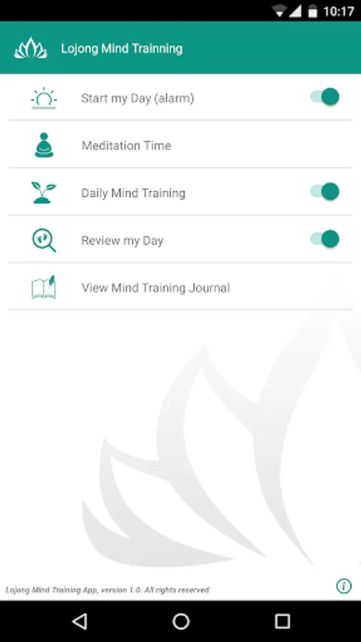 1) Start my Day: a morning alarm, including a mind training reminder.