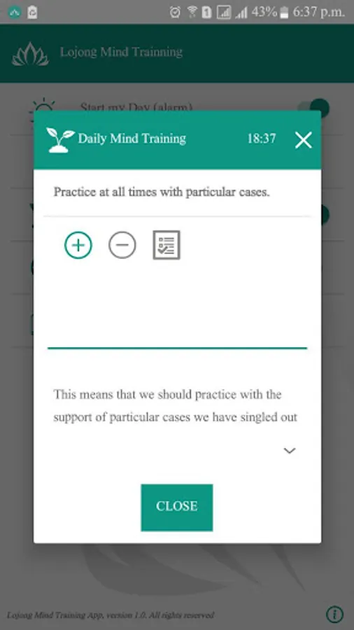 The Lojong Mind Training App is based on the famous Buddhist text Mind Training in Seven Points (Lojong dön dün ma) by the Tibetan master Chékawa Yeshé Dorje and its commentary by Khenchen Appey Rinpoche (1927-2010). It was designed to facilitate the integration of the various levels mind training taught in this text, through meditation and in particular in our daily lives.