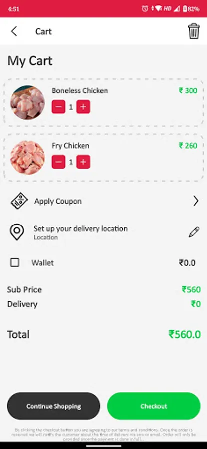 You can order all types of chicken from our App and Get your order delivered at your door step. You can also manage and track your orders online. Morever, you can choose Cash-on-delivery or you can pay online by choosing any of the payment method.
