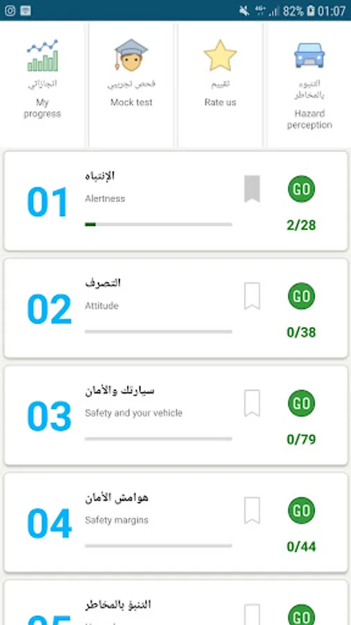 يحتوي الفحص النظري لقيادة السيارات على أكثر من 777 سؤال للفحص النظري الرسمي