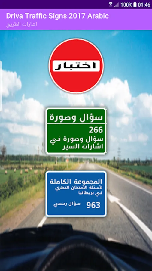 يحتوي الفحص النظري لقيادة السيارات - 2017 - اشارات الطريق - على أكثر من 277 سؤال للفحص النظري الرسمي.