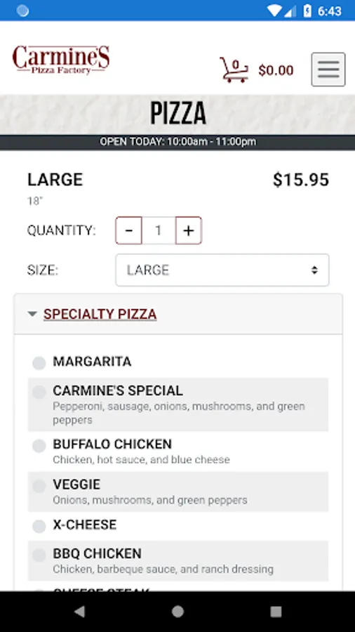 Carmine's Pizza Factory is a family owned business. Serving the Jersey City community since 2000. We offer a full line of pizza and italian specialities.
