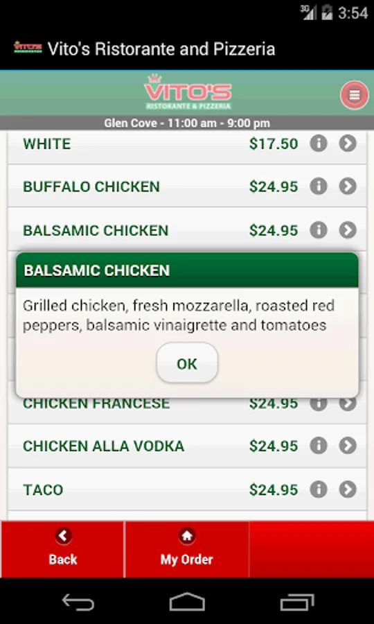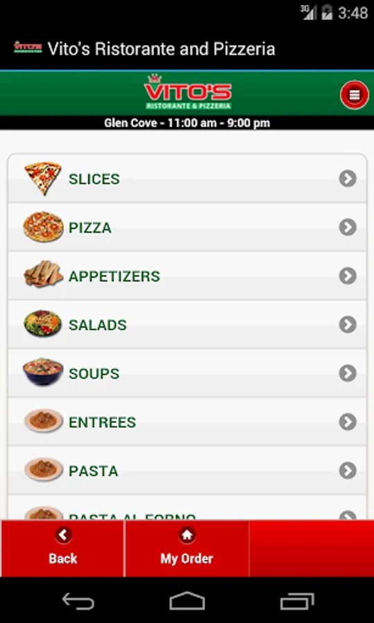 Using Nonna's recipes and working side by side with one of Brooklyn's finest, my father, I look forward to making Vito's Restaurant & Pizzeria one of Glen Cove's favorite eateries. Stop in for a slice or let my courteous and talented staff tend to your every need in our elegant, yet cozy, dining room. And on those nights when you just don't feel like leaving home, our trained staff is ready to deliver from our kitchen to yours. We deliver all items from our menu: pizza, heros, wings, salad, pasta, soup, appetizers, and desserts. Having a party won't be the same without having Vito's catering.