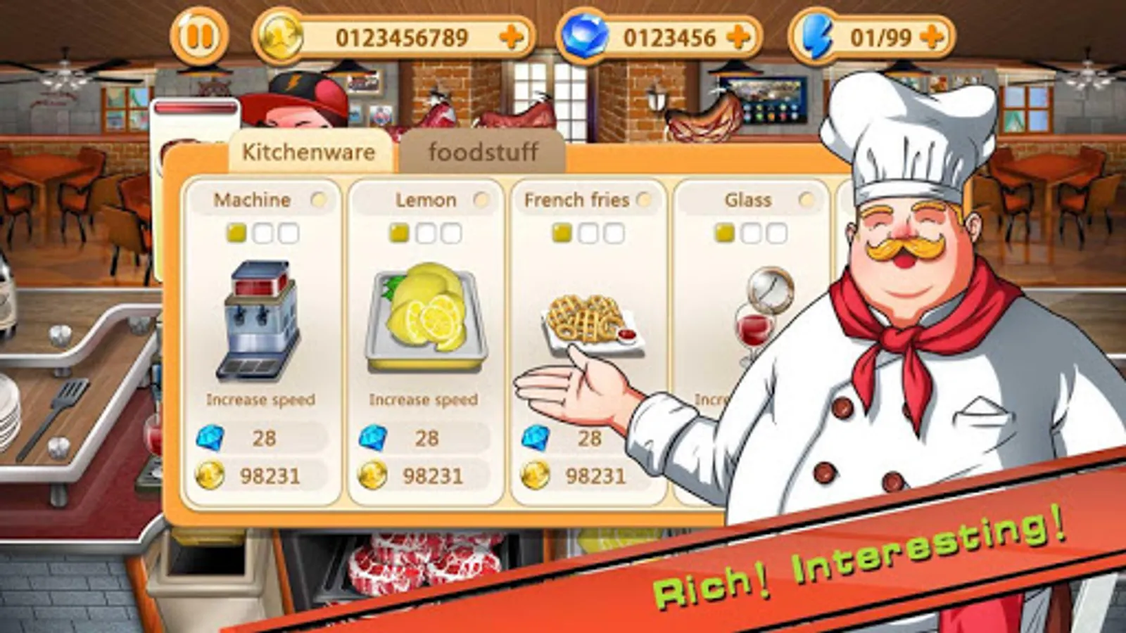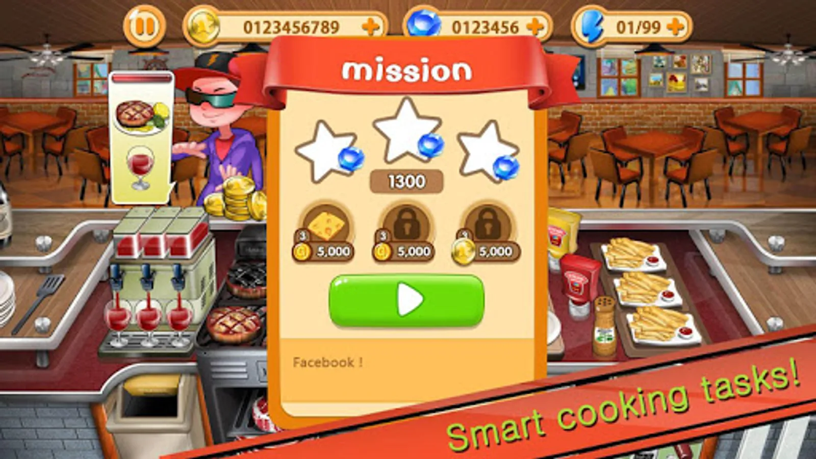 FREE on your device – you’ll be playing all day! Cook delicious meals and lovely desserts from all over the world in this FREE addictive time-management game! Show your stuff and feed the hungry stomachs. You will be able to practice your skills in a variety of settings and cooking techniques. Use more than dozens of materials to cook several hundred noble dishes.Fast-Food, Bakery, Chinese, Pizza, Seafood, Indian, Breakfast Café, Sushi Bar, Ice Cream Shop, Paradise Cocktail Bar, Corn Dog Van, Café Mexicana, House of Crab, FC Barcelona Sports Bar, Sunset Waffles, Smokey Grill BBQ and so on. Hear them gasp and cheer Have fun cooking and don’t forget to share your delicious meals with your friends on Facebook! Continuing enjoyed playing games, it will be very hungry!