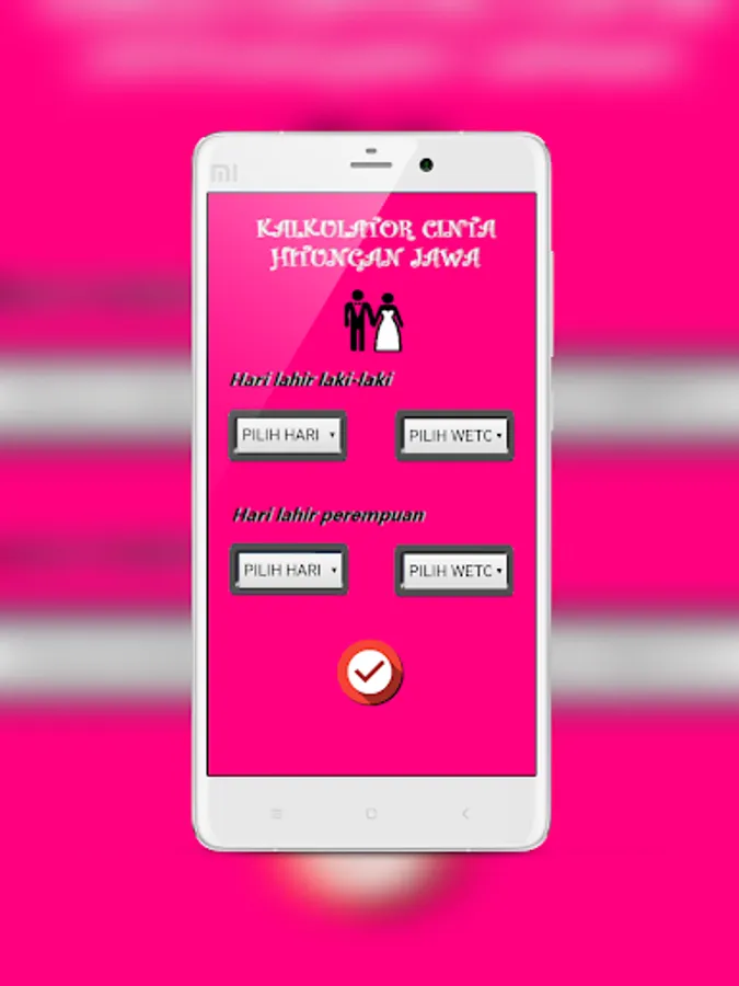 The purpose of making this application is not to determine the mate, this application is only a science that Javanese culture at that time in determining a marriage is done weton calculation, and this application is only an entertainment pleasure, may you respond to this application wisely and positively