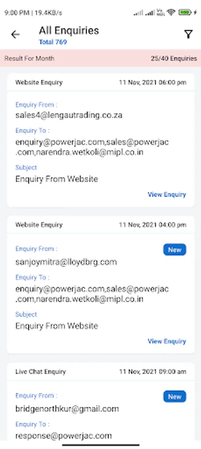 Enquiry Tracker is an application to engage customers of MID to get quick access to the enquiries generated. The app is meant for global distribution. The Enquiry Tracker requests/enquries will be generated through the websites and can be accessed through this application.