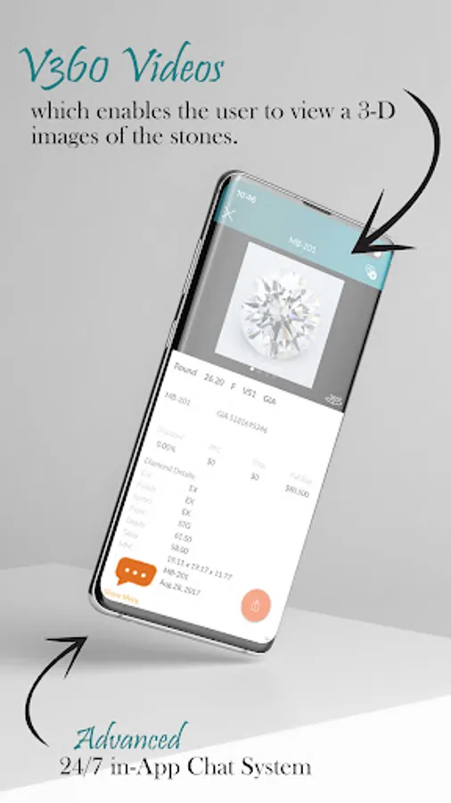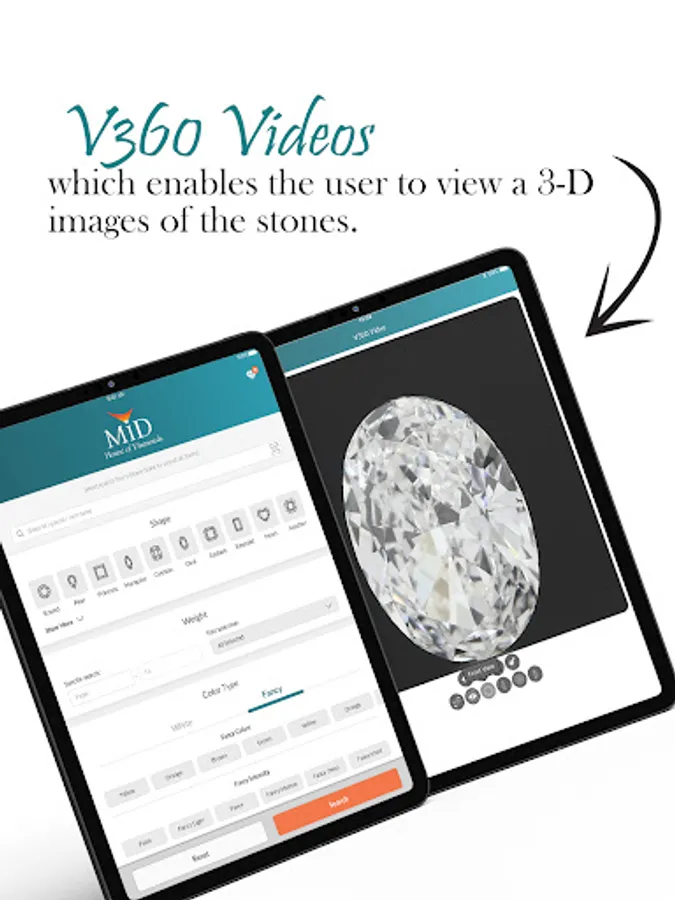 This improved app also enables you to see V360 diamond photography and certificates of all the MID's Vast Diamond inventory.