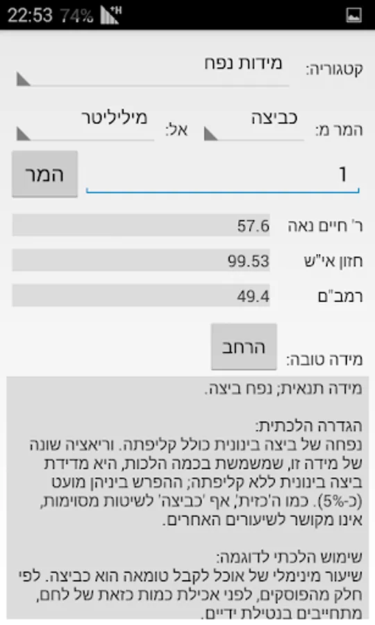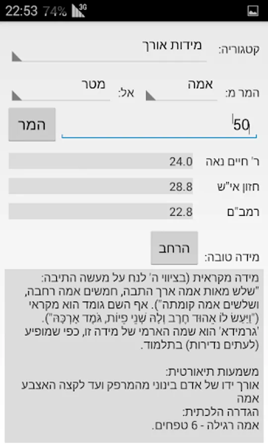 Recommended for studying Torah, Mishnah and Gemara - you can convert any measurement units you come across them, like her mother, egg, Omar and more.