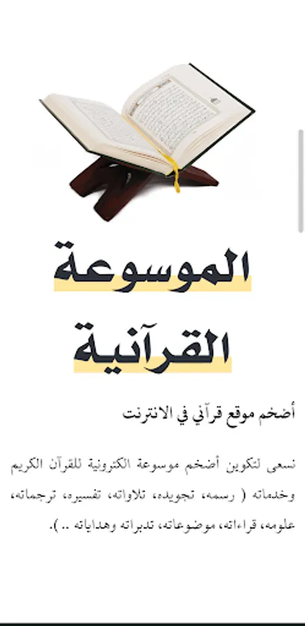 We seek to create the largest electronic encyclopedia of the Holy Qur’an and its services (drawing, intonation, recitations, interpretation, translations, sciences, readings, themes, reflections and gifts..).