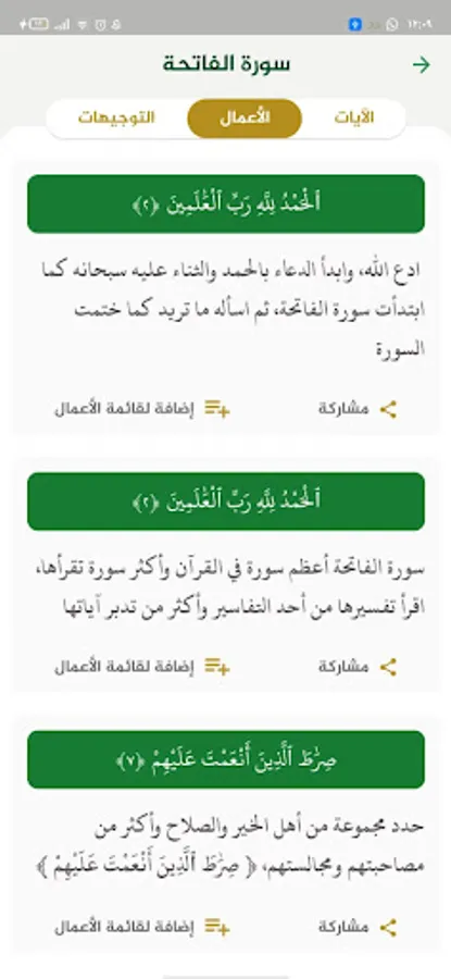 In addition to the list of directions and actions urging the holy verses, they are presented in a modern, attractive and comfortable format for reading, with the ability to share as an image or text.