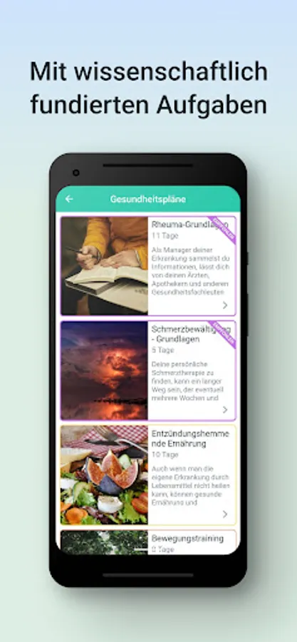 Please note: The applications presented in this app support you in improving your disease activity and physical limitations. They replace neither a visit to the doctor nor the necessary drug therapy.