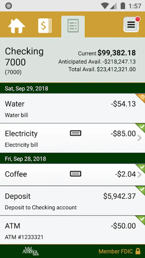 • View recent transactions, including check images