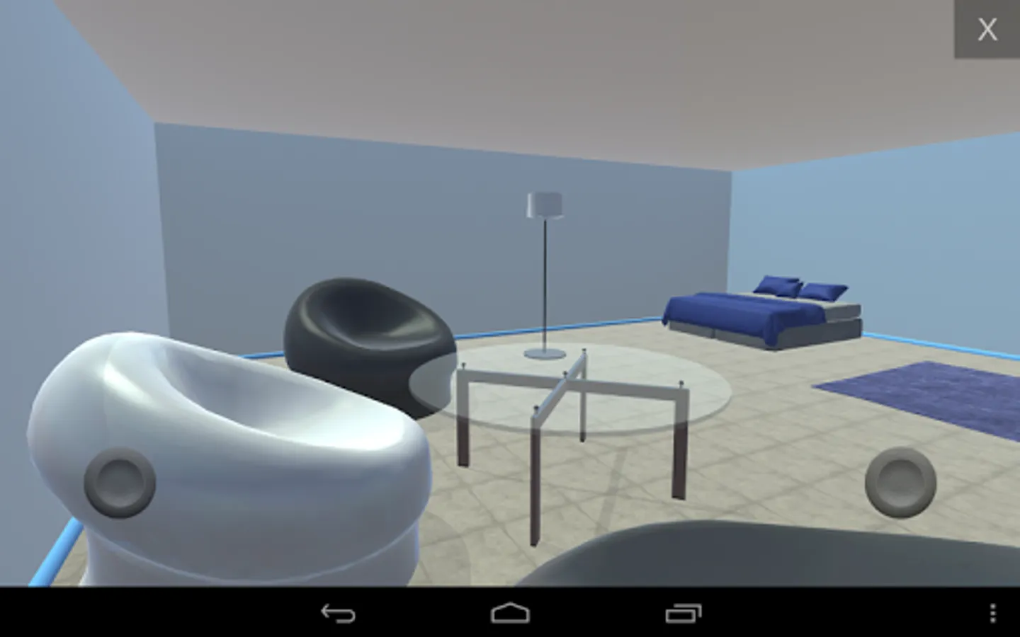 Select the object you want, tap on the floor to place it, and hold and drag your finger to precisely position the object.