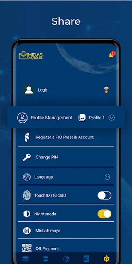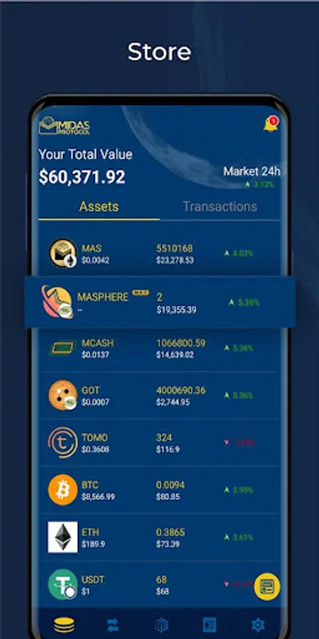 The Midas Protocol mobile wallet is fast, responsive, stable and lightweight, on both iOs and Android. The wallet is integrated decentralized applications or DApps and also BApps or Blockchain Enabled Applications, in order to allow users to interact with their tokens directly from the wallet.