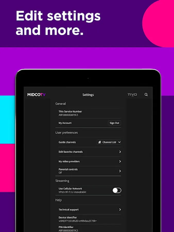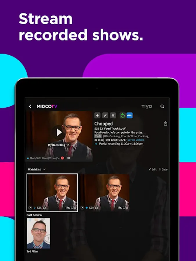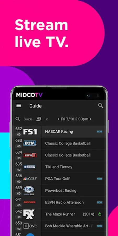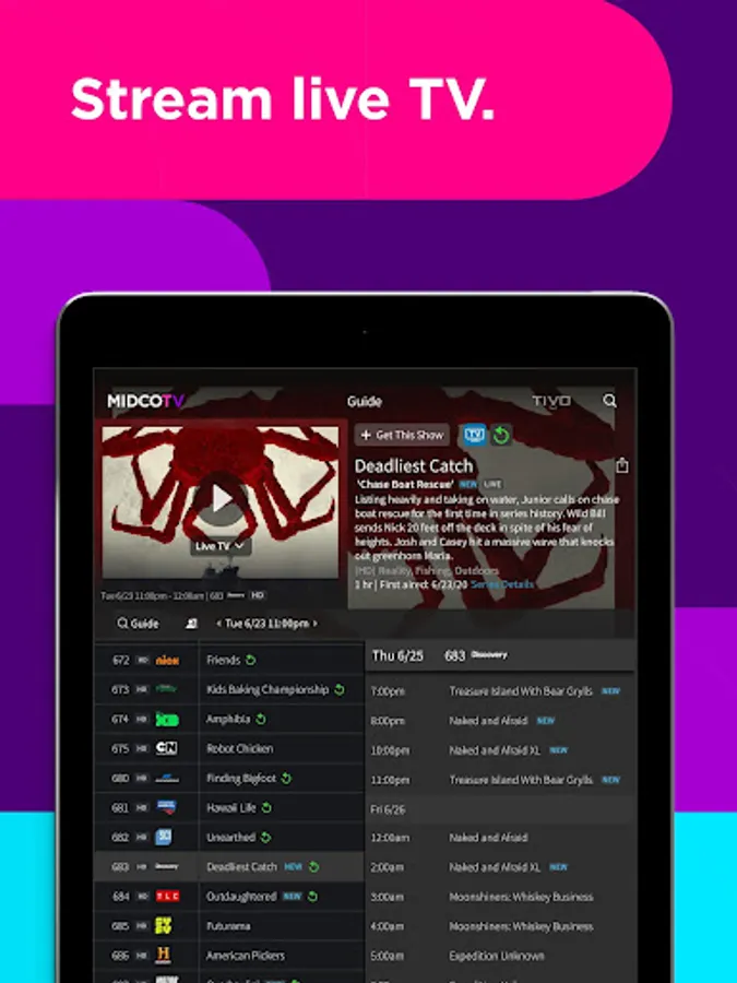 The MidcoTV app is only for subscribers to MidcoTV (not other Midco cable services). After MidcoTV equipment is connected to your TV, download this app on any mobile device to stream live TV, and watch ON Demand and more (while you’re on your home network). With up to three streams at once, everyone can enjoy what they want. Plus: Schedule and manage cloud DVR recordings from anywhere. Access TV Everywhere networks to watch more shows. It's free with your MidcoTV subscription. Learn more at MidcoTV.com. Have other Midco cable services? Check out Midco.com/TVE for streaming access.