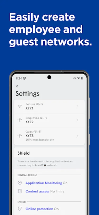 - Access zones: Multiple types of access zones – your secure zone, employee zone and guest zone – ensure everyone on your network has the right level of access.