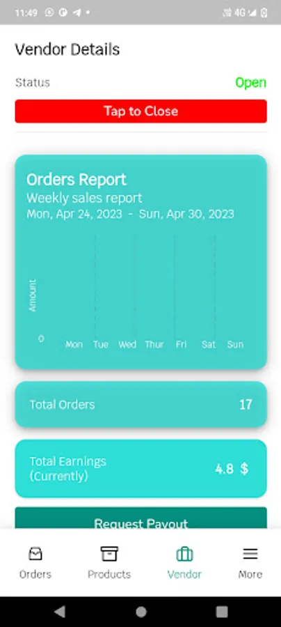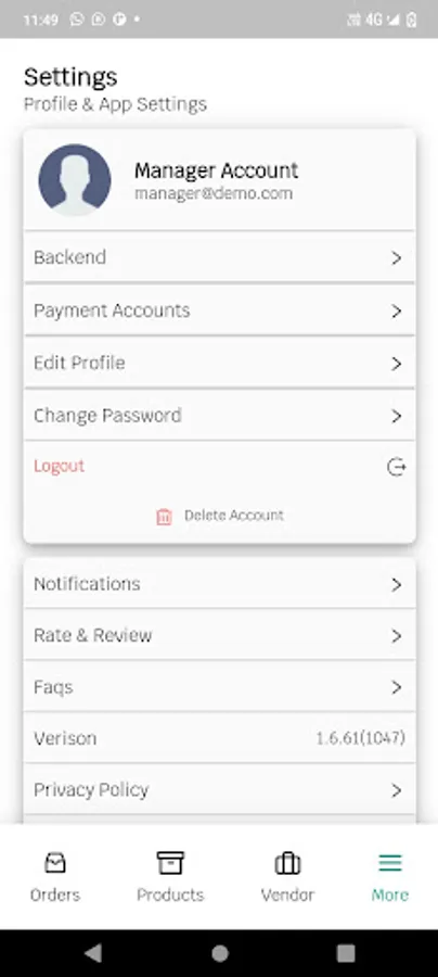 The application allows you to manage your vendor account and delivery drivers and lets you take pictures of your products so you can update your products on the go.