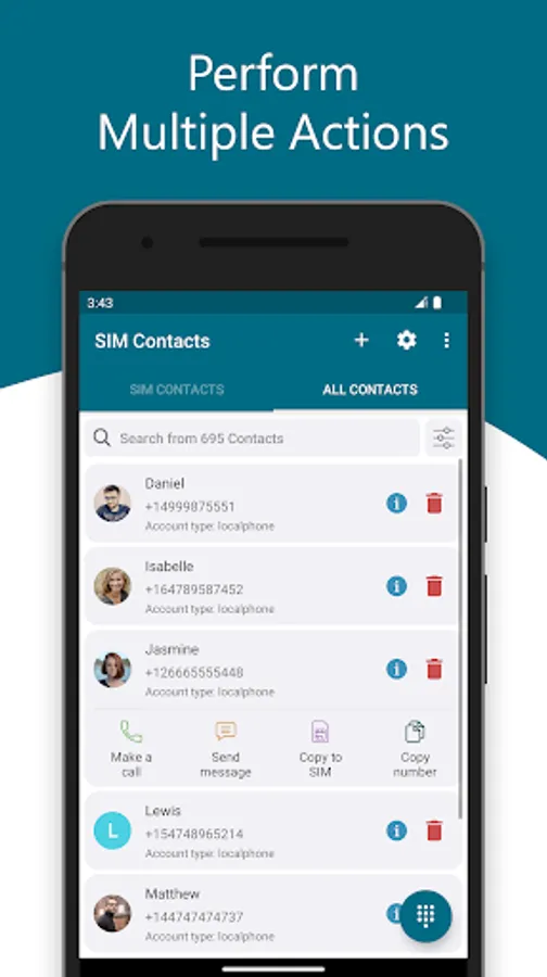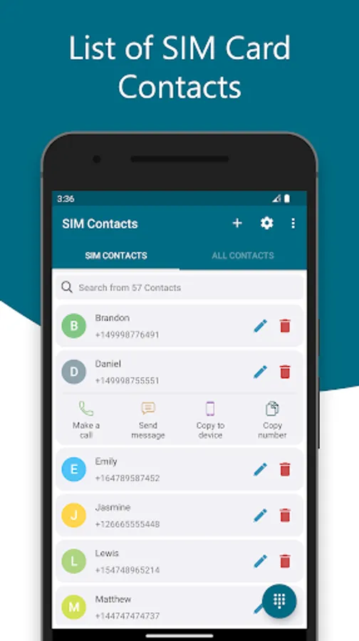 SIM Contacts lets you easily & efficiently manage SIM card contacts.