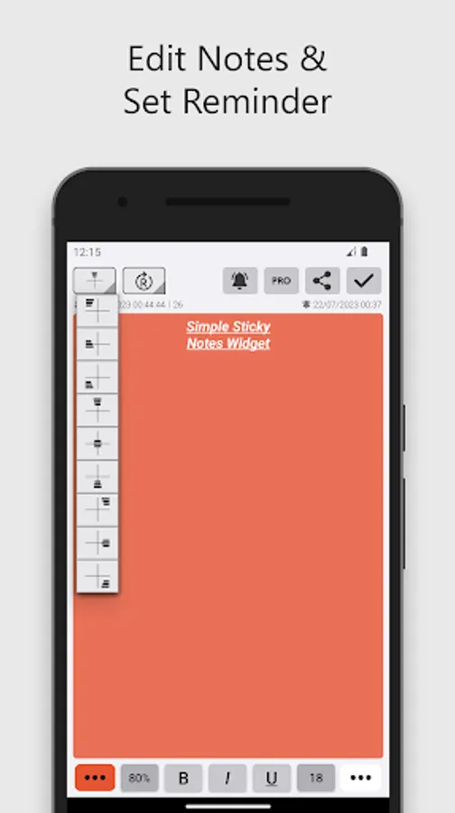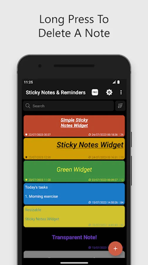 1. Touch and hold the Sticky Notes & Reminders Widget on your Home screen.