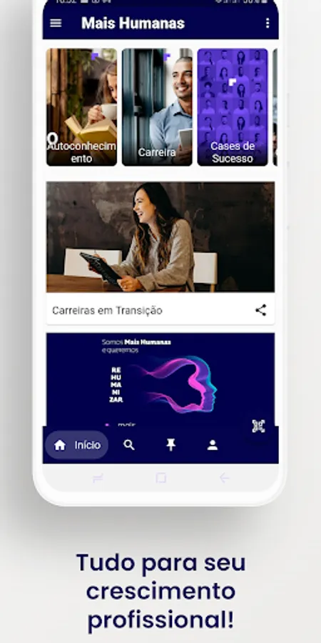 With the Mais Humanas app you will have everything you need and want to know for your professional development, in the palm of your hand... wherever and whenever you want. That's right, much more updated knowledge and super fast!