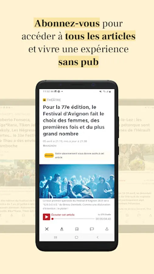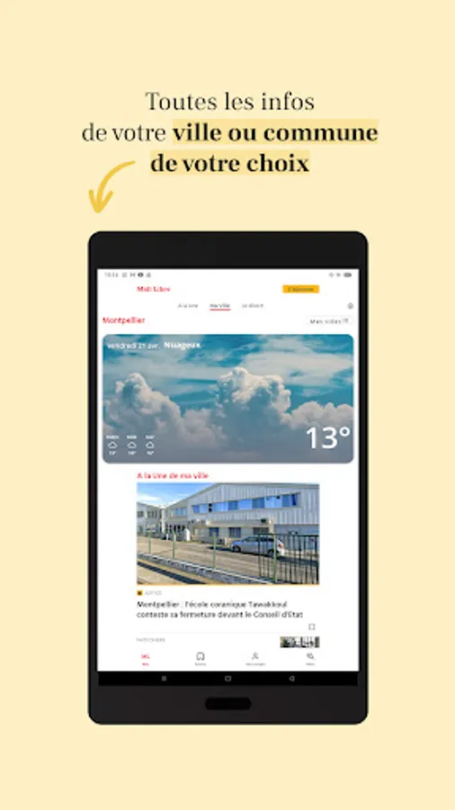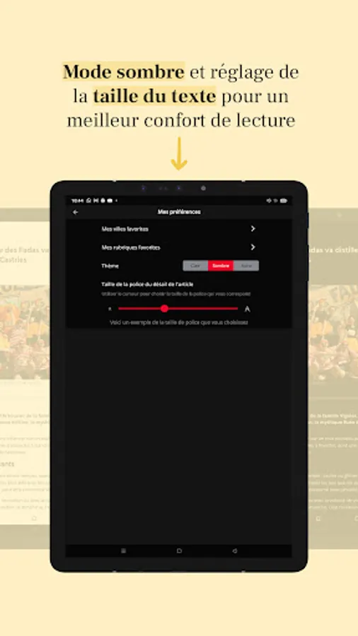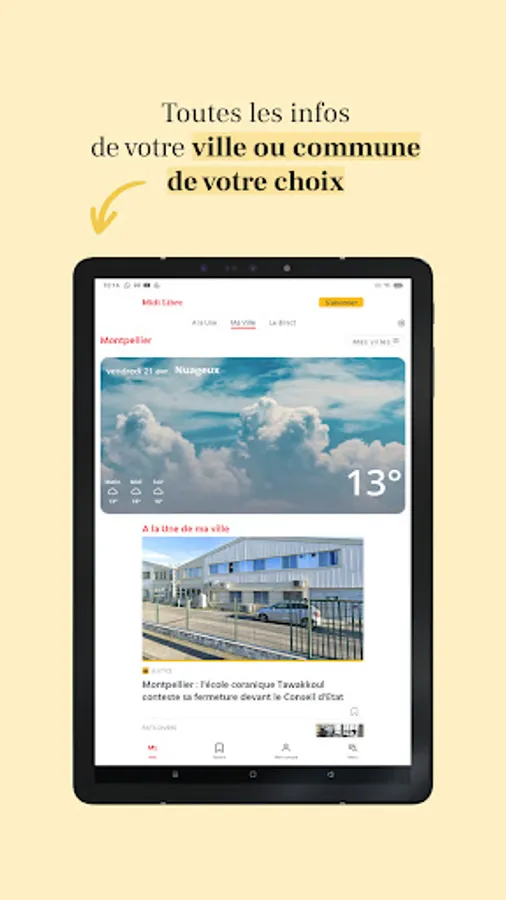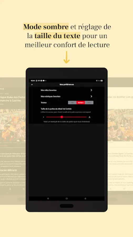 My Account: to manage your subscription settings, notifications, newsletters and your preferences (cities, sections, dark or light application theme and font size)