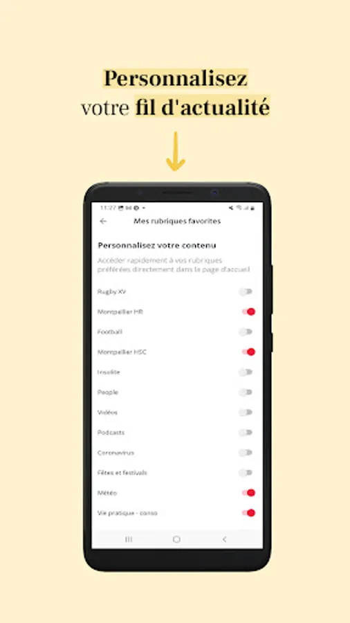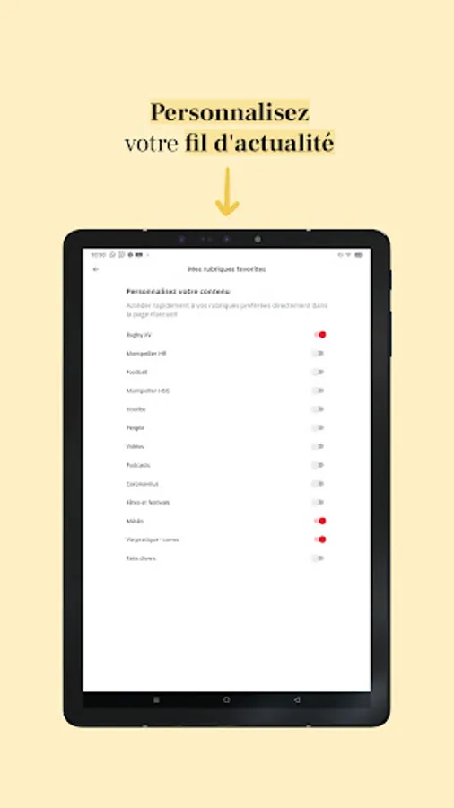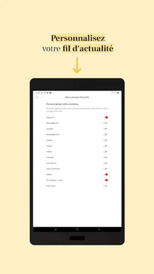 Compose your home screen with the sections of your choice: Economy, Sport, Health, France-World...