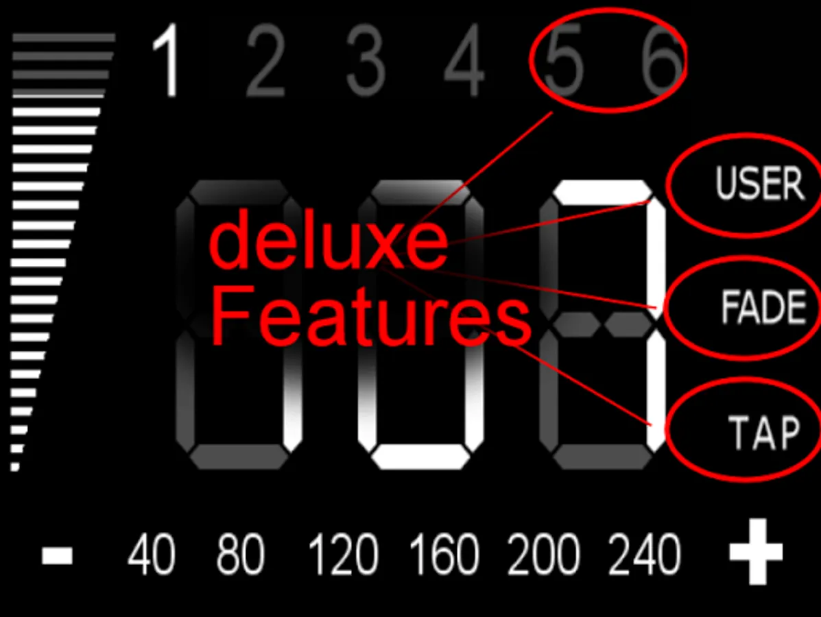 With FADE you can fade out the metronom after 20 sec. This is very usefull in a band, where you want to have a metronom at the beginning of a song, but later you don't need it.