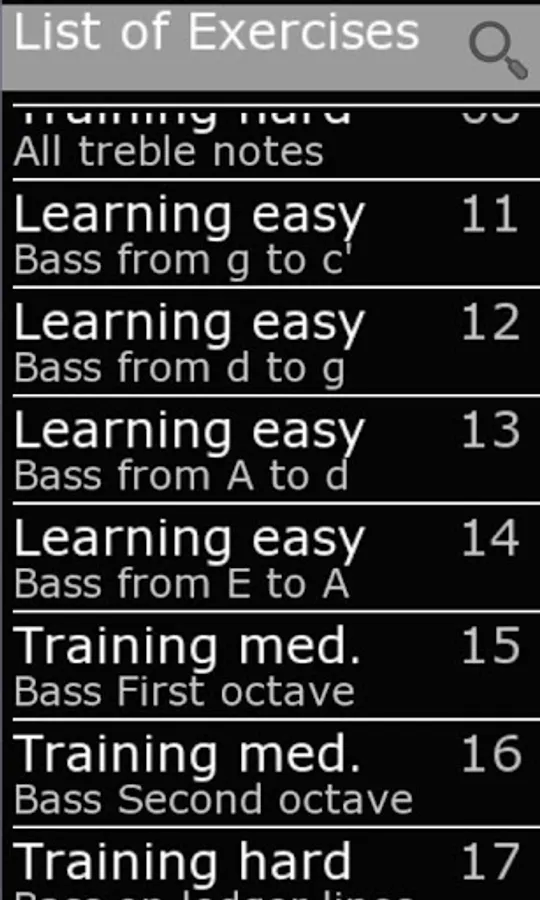 If the exercise cannot be found, the trainer uses a compensation exercise and adjusts the level of difficulty also automatically to your skills by variing the intervals and scope of notes.