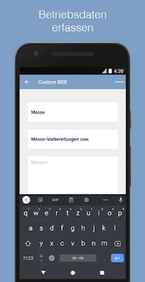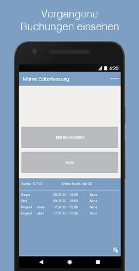 As a supplement to our time recording systems, you can record your working and project times at any time and from anywhere with our smartphone app Mtime. Keep track of your time entries, edit incorrect entries and add forgotten times!