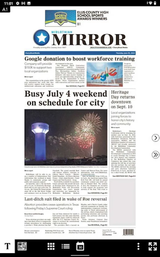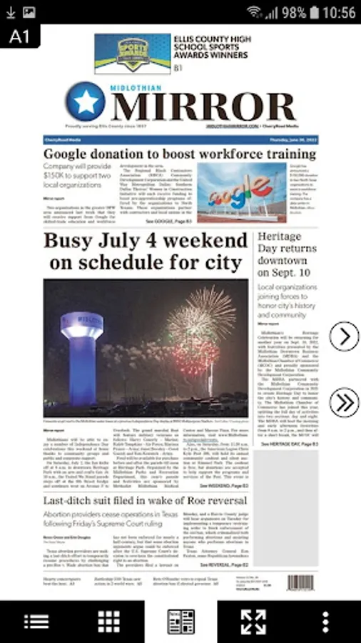 The Midlothian Mirror eEdition is an exact digital replica of the printed newspaper. Readers of the paper can flip through the pages, read stories, photos, and view ads just they appeared in print.