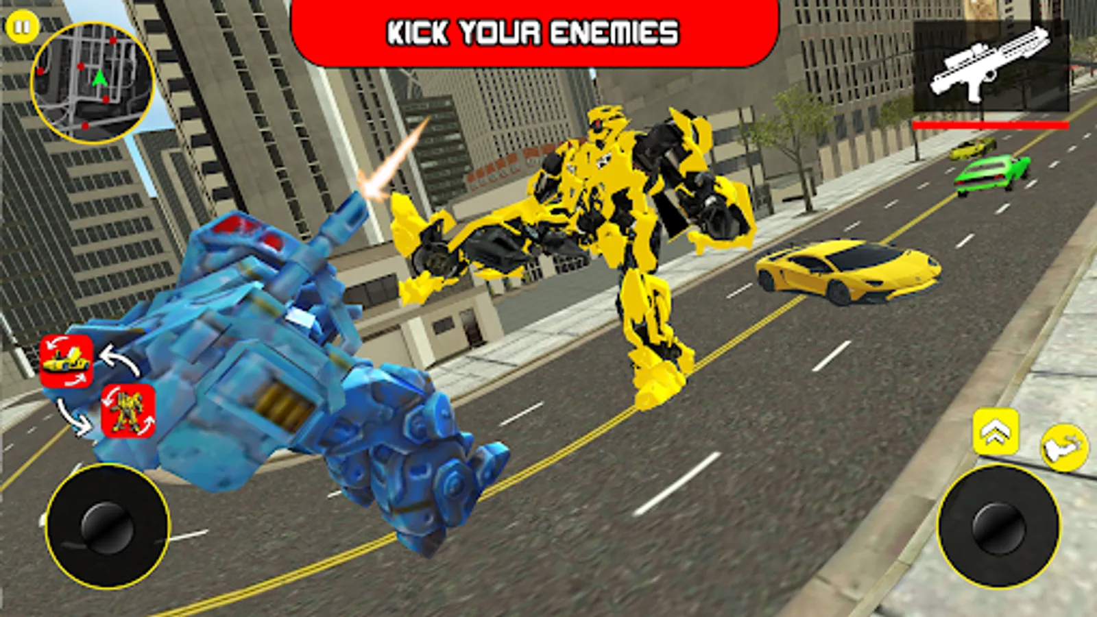 Get ready for an action-packed adventure in the ultimate Robot Car Transformer Game! Immerse yourself in the thrilling world of robot car transformations, as you take on the role of a powerful transforming robot with a mission to destroy cars with laser beams and rockets while eliminating ruthless gangsters. With this unique blend of robot shooting games, robot transformer games, and robot fighting games, you'll experience non-stop excitement and adrenaline-pumping battles like never before.