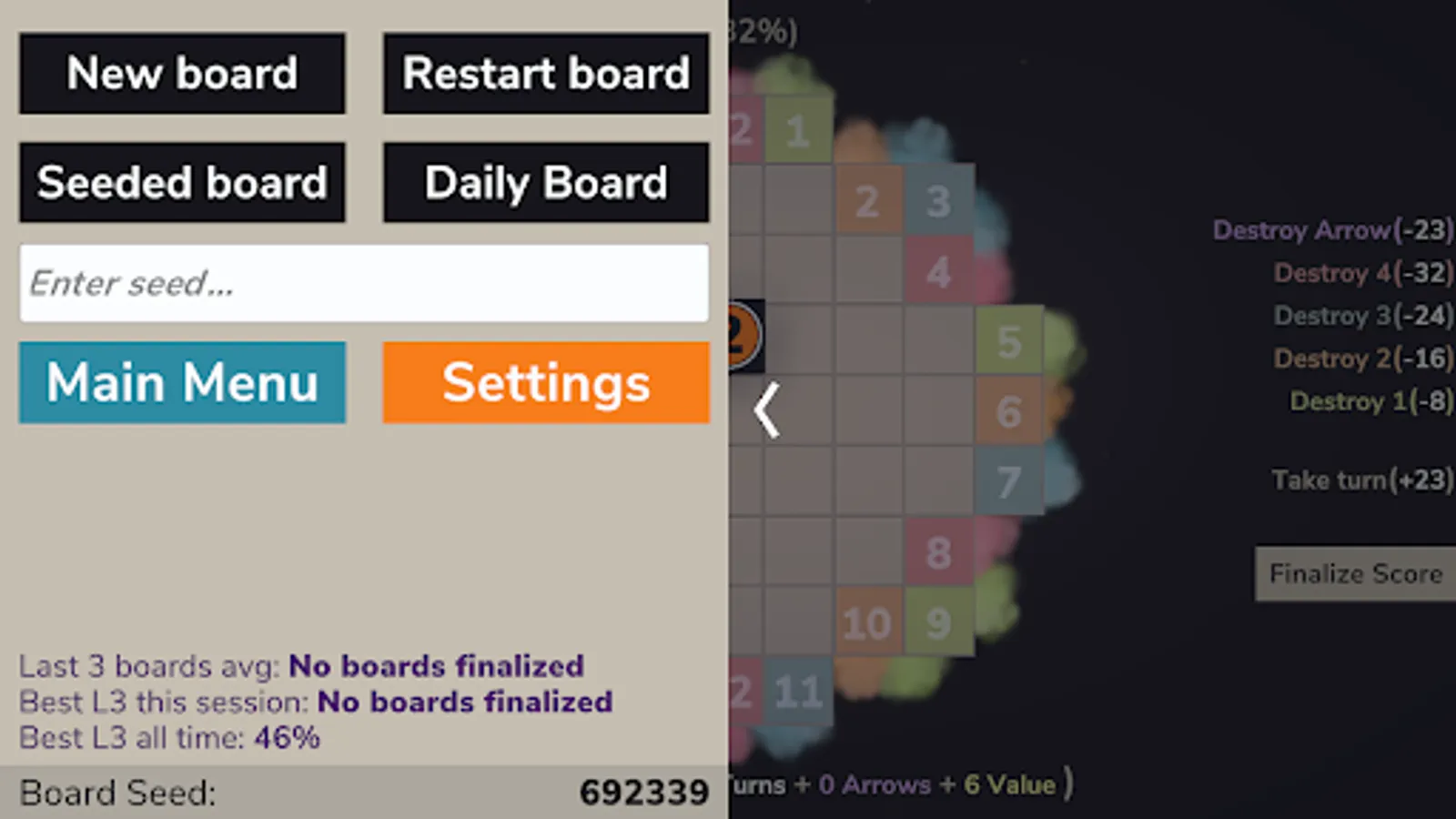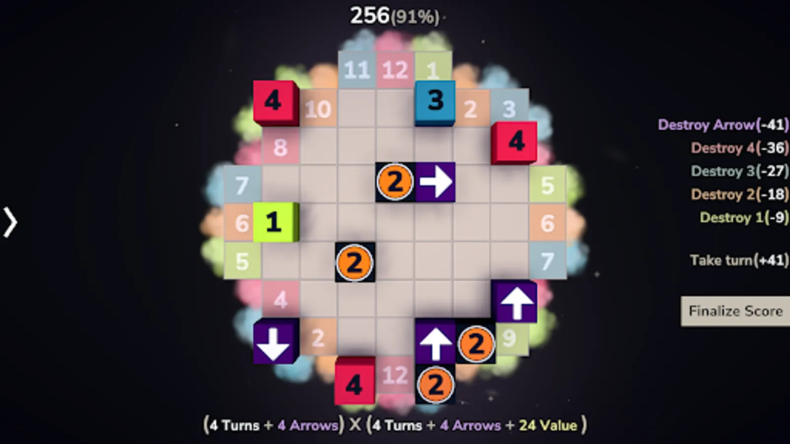 In this game you will be moving different selected groups of blocks that will destroy those they hit, which could include your available directions-arrows on the board. Try to finalize the lowest score on each generated board.