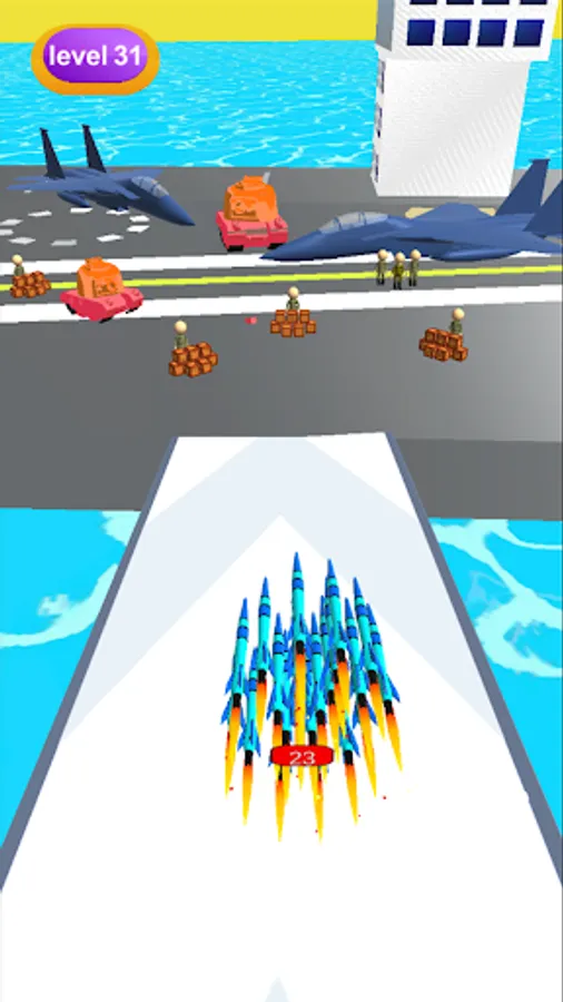 Control the missiles and guide them to hit the enemy base at the end of each level. Drag left/right to maneuver through different enemy vehicles and kill them all!