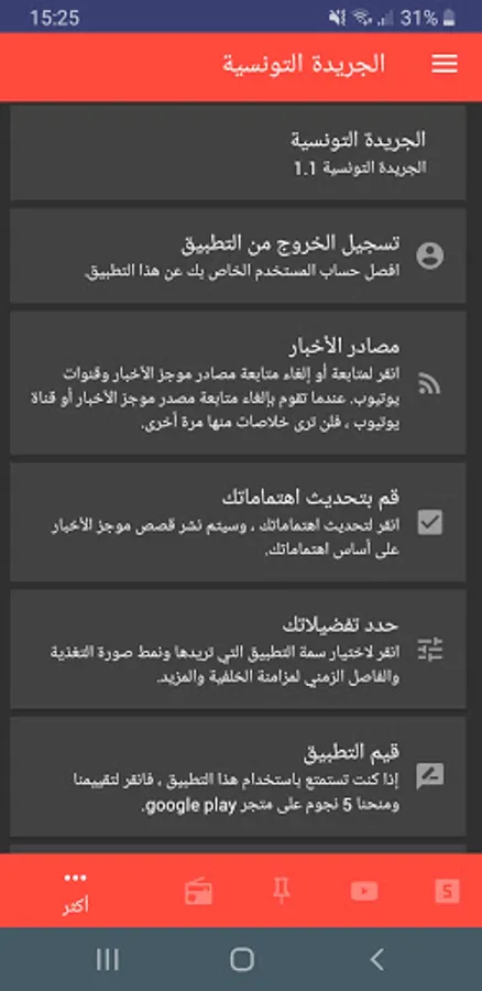 The Tunisian Newspaper is an application that provides you with a service to follow the latest urgent news of Tunisia, and makes you get the latest news of Tunisia today, moment by moment, from the most famous Tunisian sites.