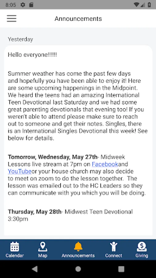 Our mission is to be a community that is composed of generations of wholehearted disciples. This app is a tool that aids our discipleship by providing real-time announcements, news, connection, and a library of faith-building resources. Wholehearted discipleship is displayed when faithful actions intersect righteous intentions, and this app provides the organizational framework to curate those moments.