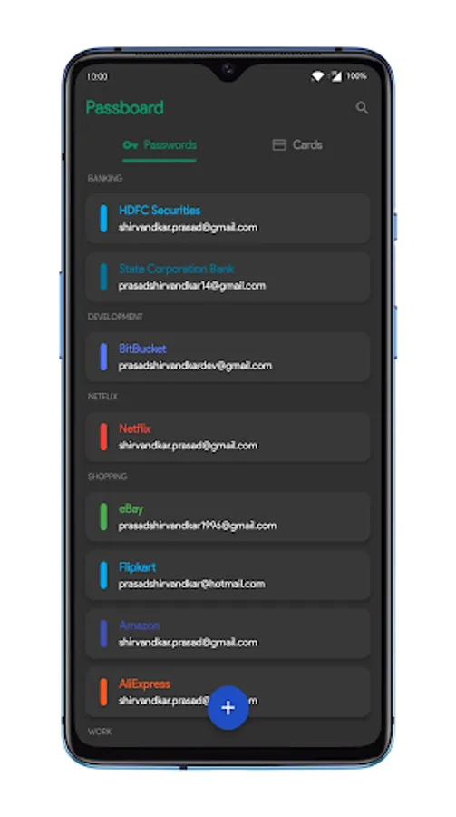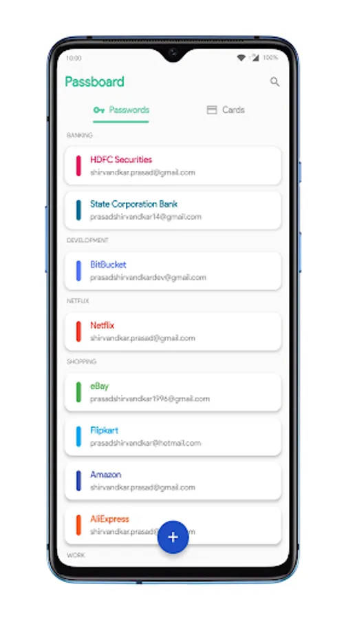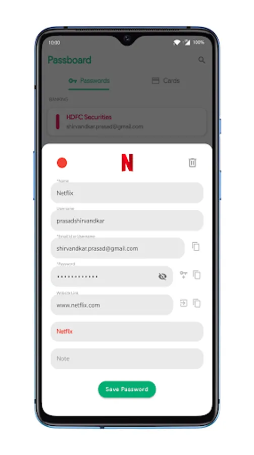 Passboard is a simple and easy to use Password Manager app which allows user to save their Sensitive Information like Passwords, Cards and Other Data securely on your own device and does not upload any of the User Saved Data to the Cloud or any other Servers.