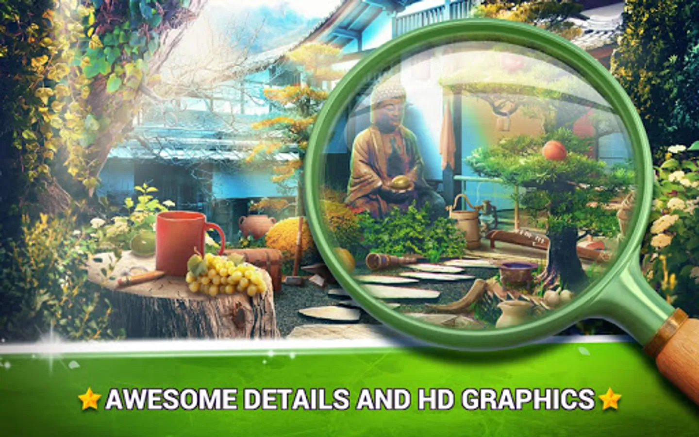 Download free hidden object games and enjoy your visit to the zen garden! If you like to play adventure games, you're going to fall in love with these exquisite mystery hidden objects! Seek and find hidden objects and solve the puzzle in zen garden like a real detective! Take your magnifying glass and start looking for hidden objects in the pictures! This search and find puzzle game contains excellent mystery games free for kids and hidden object games for adults. Kids will enjoy playing free logic games because it will help them revise vocabulary and practice their quick fingers. Adults will use this hidden object puzzle game to enhance their concentration and memory! Unravel the dark secret in the beautiful garden and enjoy your new hidden adventure! Solve the hidden object puzzle and collect as many stars as you can! These are the best detective games which are also excellent brain teasers and mind games!