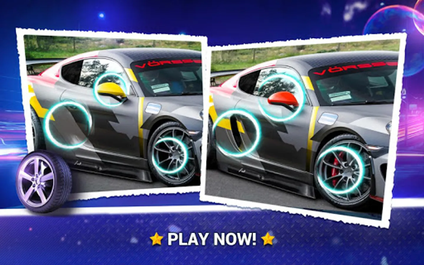 Do you like memory games, puzzle games, and games for concentration? If it is your goal to enhance your mental skills, to improve memory, to sharpen your visual skills, and also perfect your ability to notice small details, download Find the Difference Cars and enjoy using this free brain teaser. “Find it games” are also very good for increasing focus and improving your concentration. So, what are you waiting for? Hurry up and find 5 differences between two pictures as fast as you can. Find the difference car games for the best players! If you like to take your car driving to the extreme, now is your chance to “spot the difference” between racing cars. In this super cool educational game, you will come across both the easy and hard levels, but we guarantee you tons of fun whatever level you choose to play. Find the difference puzzles are waiting for you!