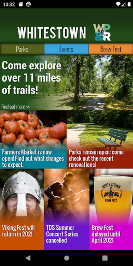 This is also the official app for the annual Whitestown Viking Fest: a 3-day immersive festival celebrating Viking culture. Get the latest information on the food, music, and fighting reenactments scheduled. Plan your day then use the app to set reminders so you don't miss any of the action!
