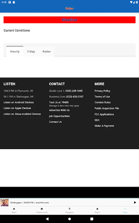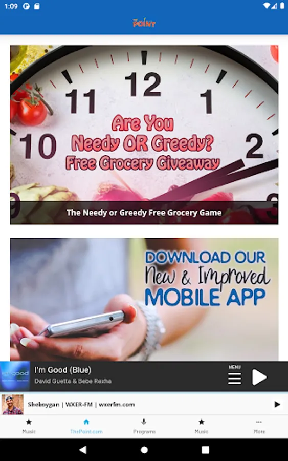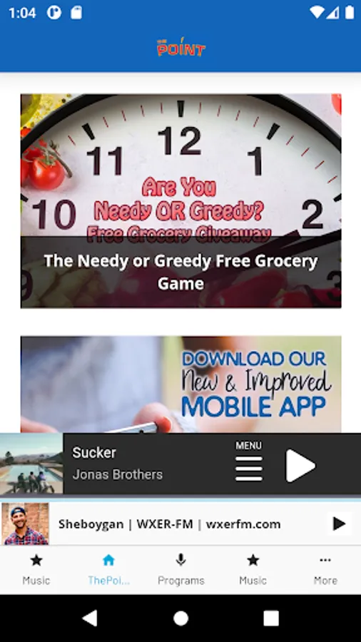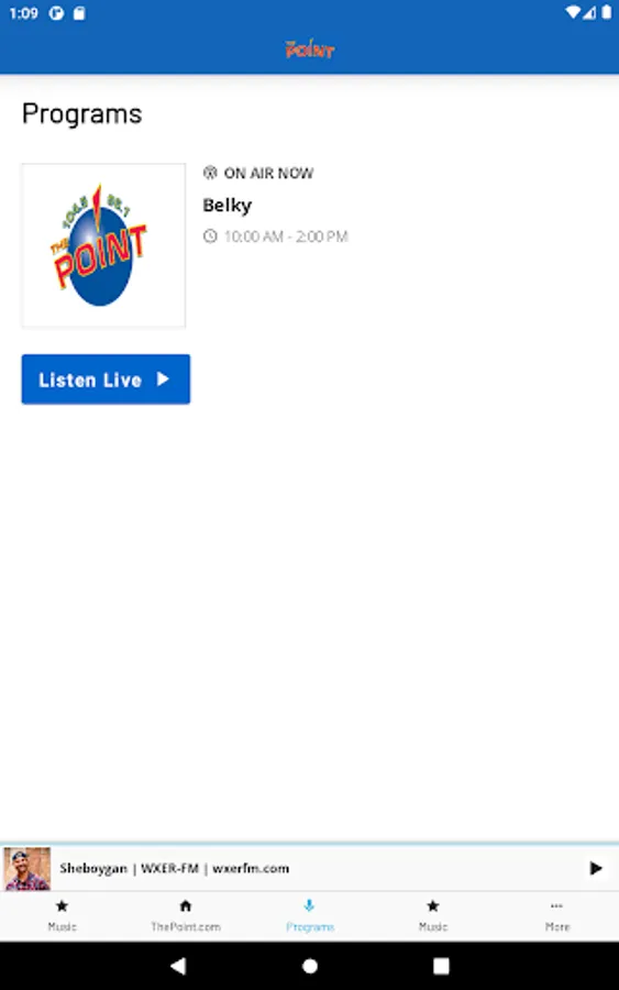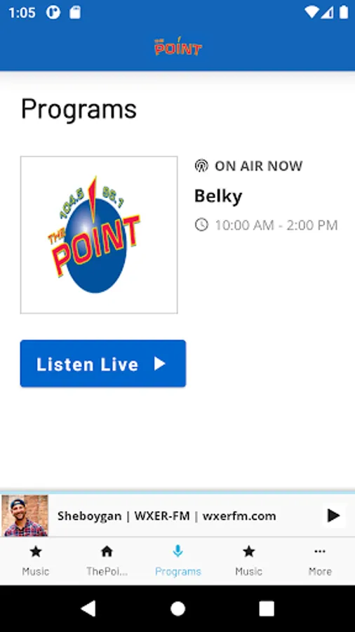 Listen to 104.5 & 96.1 Sheboygan's Point (WXER-FM Radio) anywhere with our free app! Hear Ben Olson, Belky, Jeff, and Otis Day plus all your favorite hit music anywhere you can take your phone or mobile device!