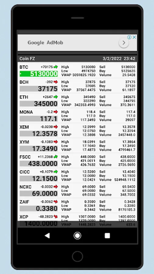 Price information by Zaif Exchange.