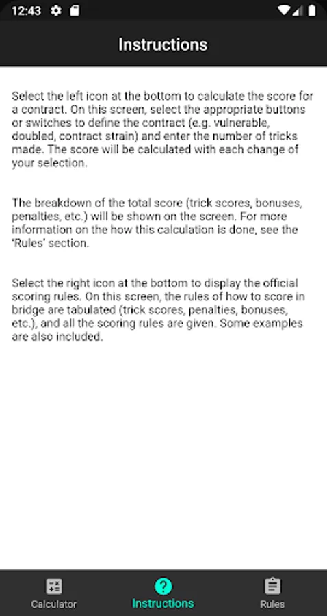 Beginners would find the description of the rules valuable. More advanced players could use the app for those tricky scores, e.g. you are vulnerable, you made many overtricks, the opponents doubled and you redoubled or you went down with lots of tricks, doubled and redoubled.