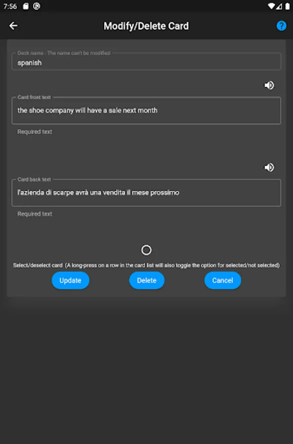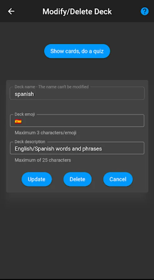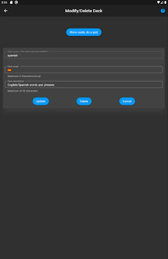 You can add or modify a deck or add and modify cards in a deck. Therefore, the application has all the capabilities of a flashcard maker.