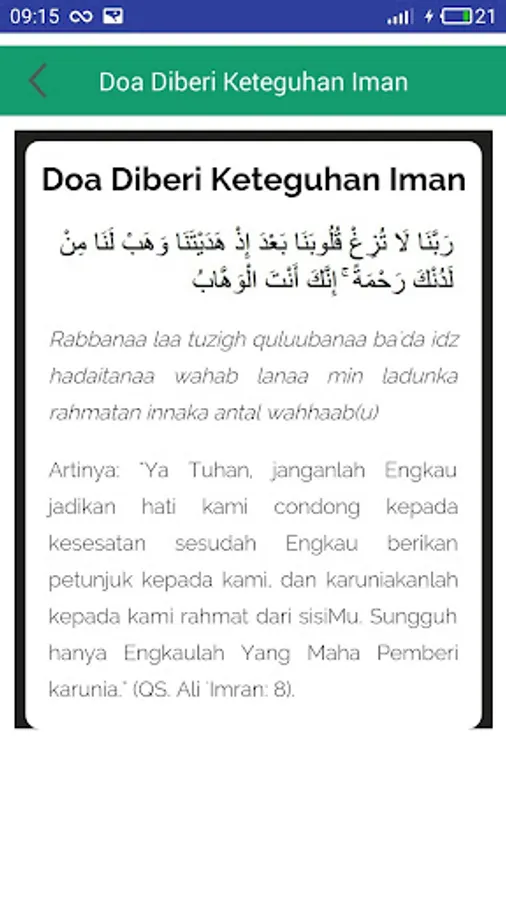 Application prayers from the Quran and Hadith is an application that contains a collection of prayers from the Koran and prayer from the Hadith of the Prophet. In addition this application is also equipped with daily prayers of Islam.