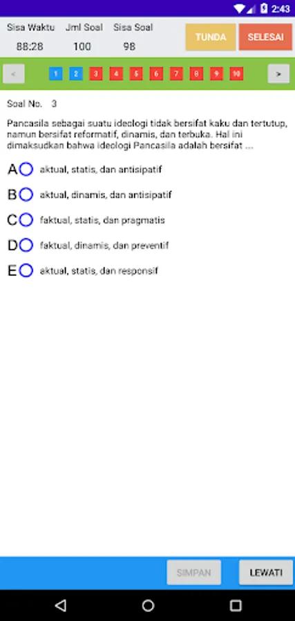 Simulation of CAT (Computer Assisted Test) Basic Competency System as your preparation for taking the CPNS test. In the SKD test there are 3 categories of questions including TWK (National Insight Test), TIU (General Intelligence Test), and TKP (Personal Characteristics Test). With practice working on the available examples of CPNS test questions, hopefully it can help you.