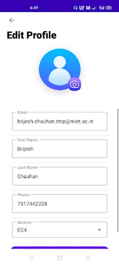 - Select your Section and Complete your Profile.