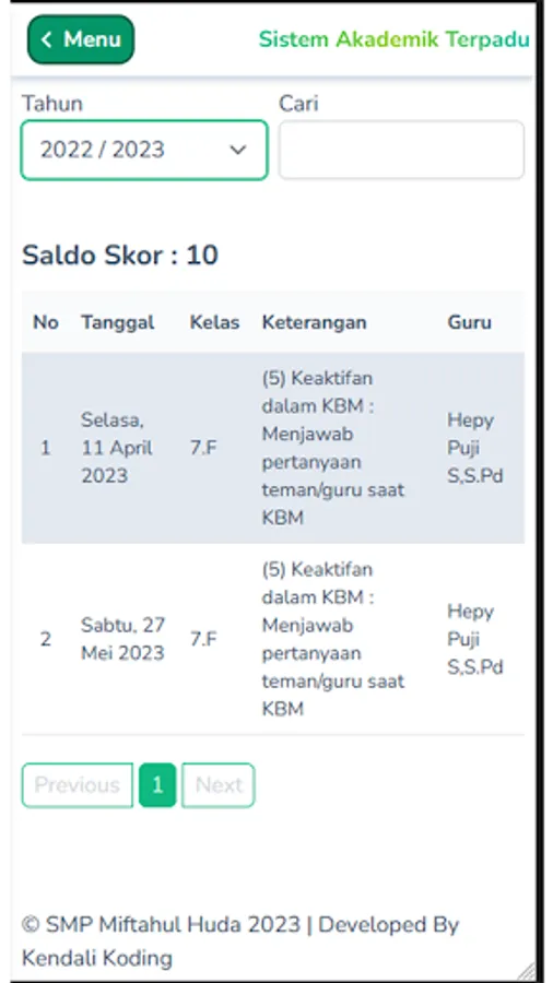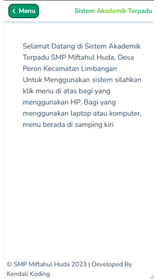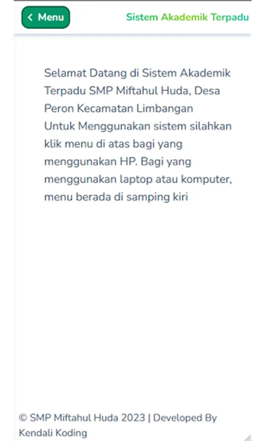 This application is an application to help parents / guardians of students for students of Miftahul Huda Middle School, Peron Village, Limbangan District, Kendal Regency to access educational results from Mifathul Huda Middle School students.
