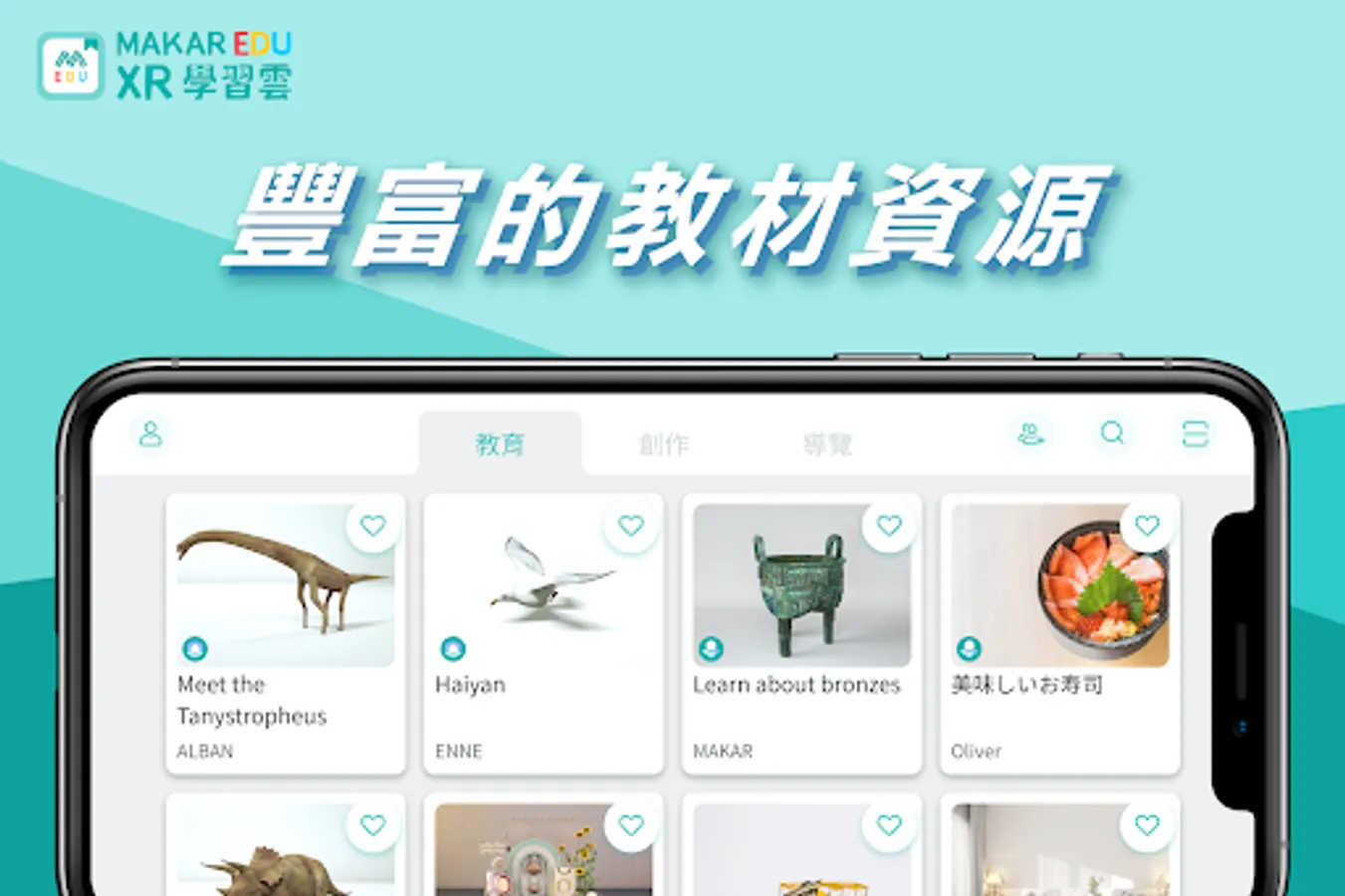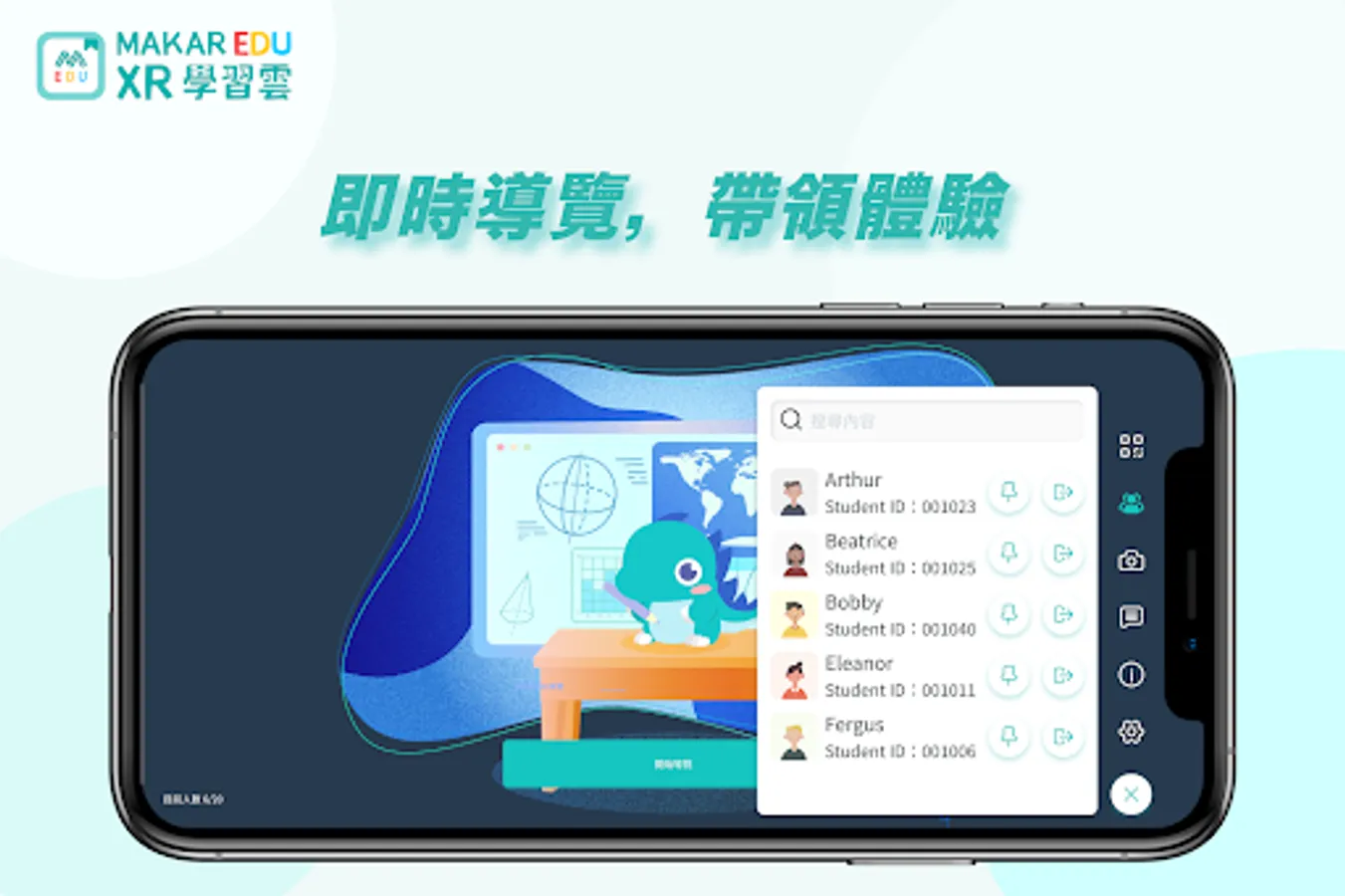 MAKAR EDU has a brand-new teaching situation. The platform has six major features, including: learning cloud management platform, data analysis and learning process, virtual and real situational learning, remote guide teacher-student synchronization, creation of XR real-life digital teaching materials and mobile content With diversified support, you can now follow MAKAR EDU to join the tour with one click, and enjoy the XR real world to learn and experience rich digital content.