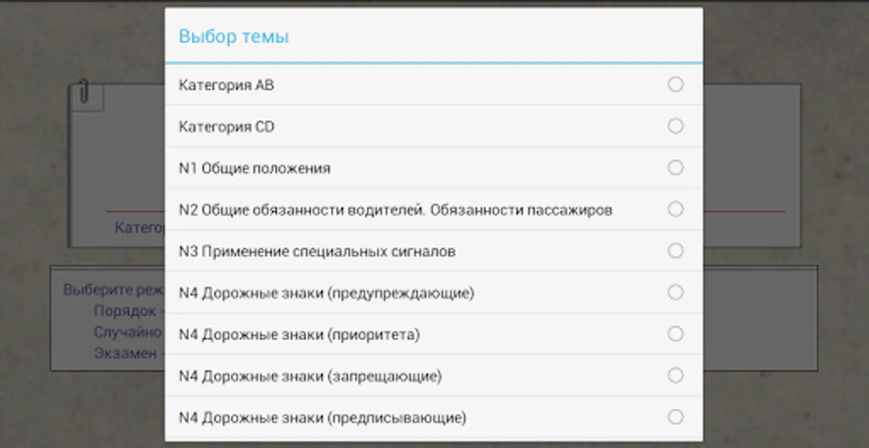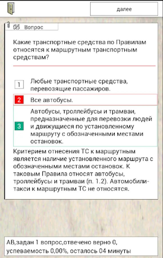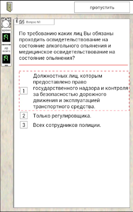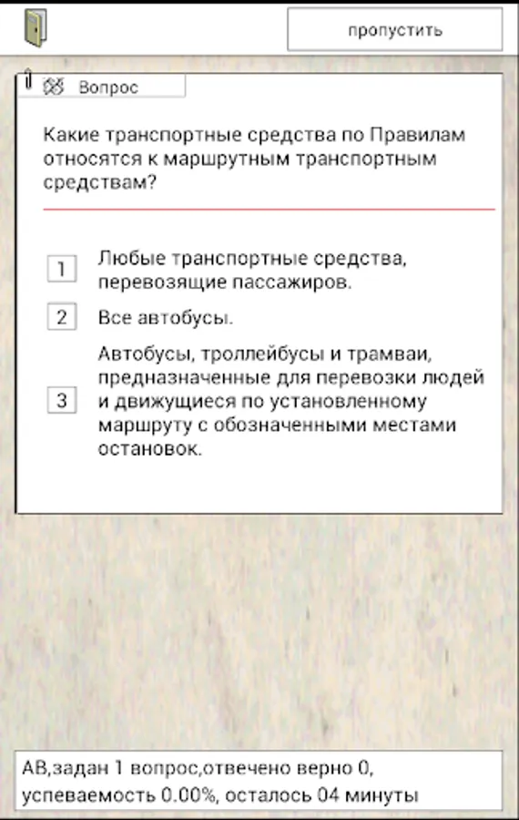 The application will allow you to try to pass the exam on their own traffic rules. You will be able to practice in addressing the examination of the database of traffic rules, in order to solve the questions, on topics accident, for a certain period of time. In the process of training accumulated statistics, the list incorrectly answered questions that you can carry out work on the bugs. Upon reaching 95% of the performance you are guaranteed to take the test in the traffic police.