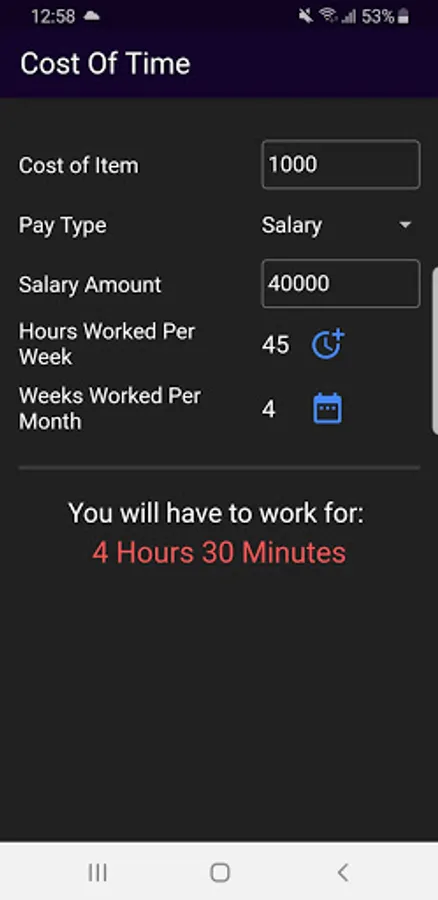 Just enter the cost of the item, your salary/wage amount and the number of hours you work in a day/week and find out just how you can spoil yourself today!
